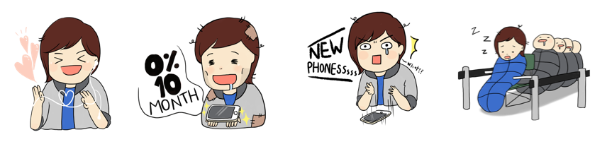 โดยลายต่างๆ ของสติ๊กเกอร์จะเป็นการเจาะลึกความเป็นสาวกผลไม้โดยเฉพาะ ไม่ว่าจะเป็นท่าทางสนุกๆ อย่างเช่น แย่แล้วแบตมือถือหมด, กรี๊ดดด สายชาร์จขาด, กราบบบ ชาบูๆ, หรือเคารพท่านศาสดา